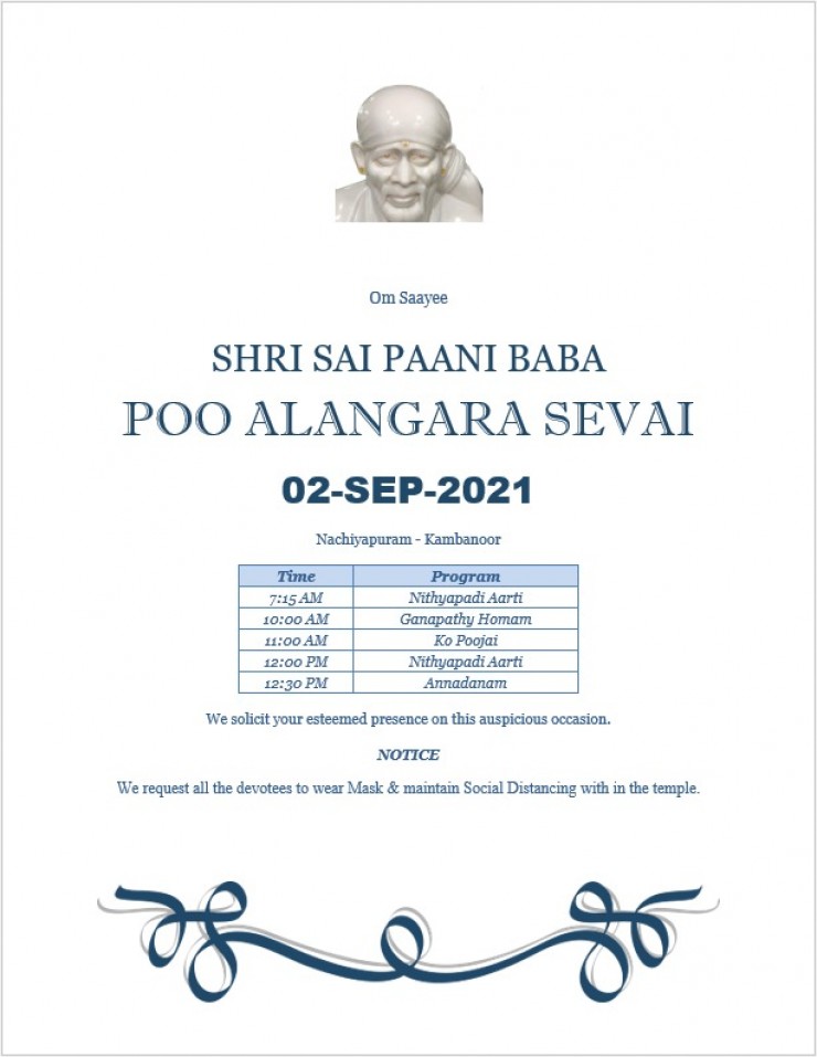 We request all the devotees of Shri Sai Paani Baba's to wear Mask & maintain Distance in the temple.